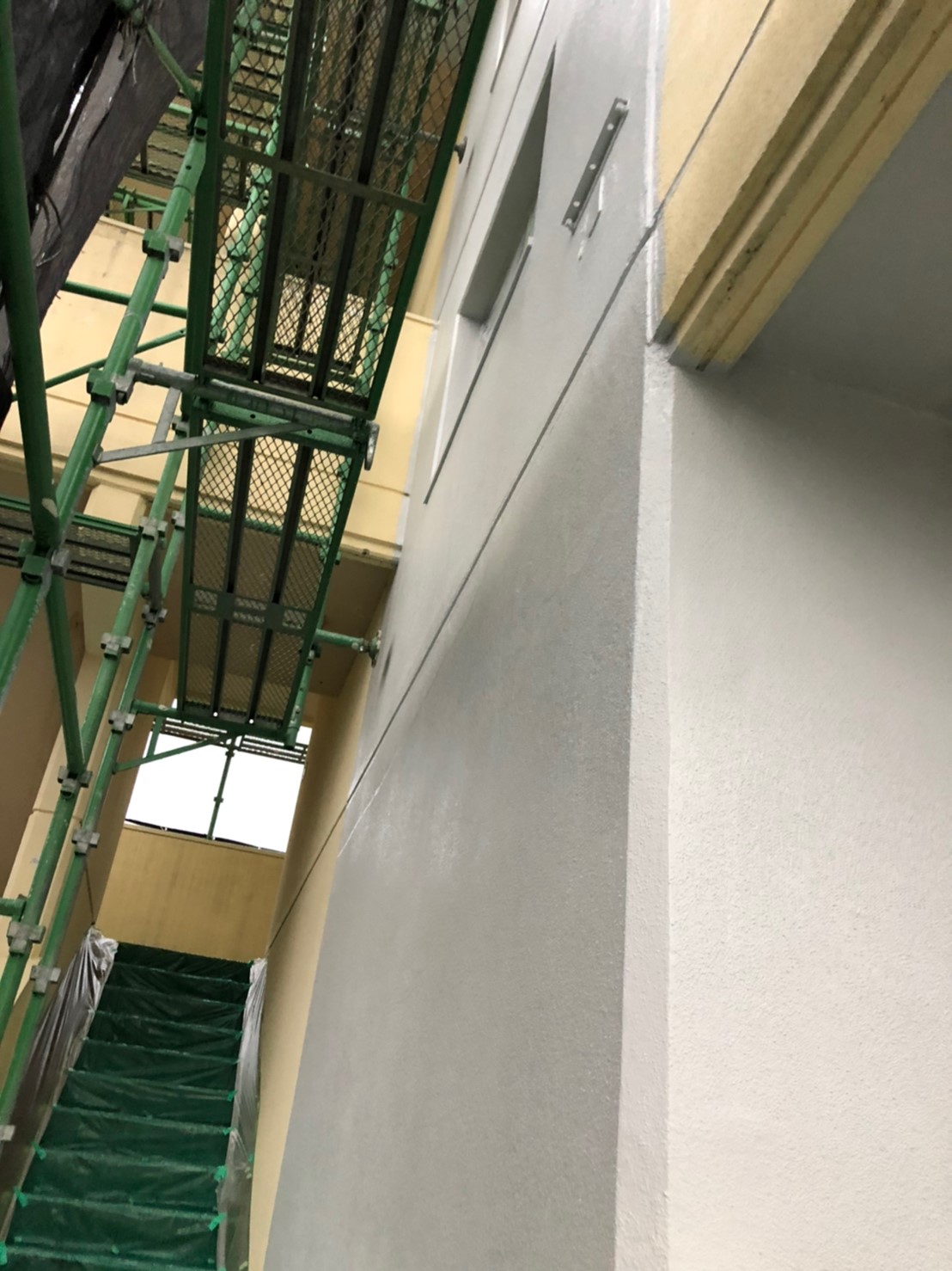 3階建ての大きなアパートの塗装工事順調に進んでいます。寒い中、ご苦労様です!