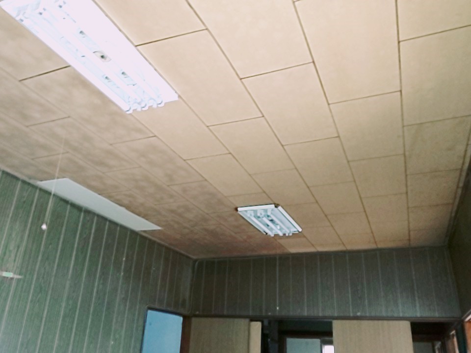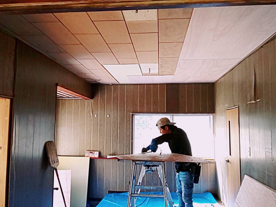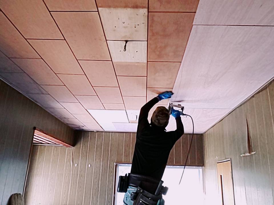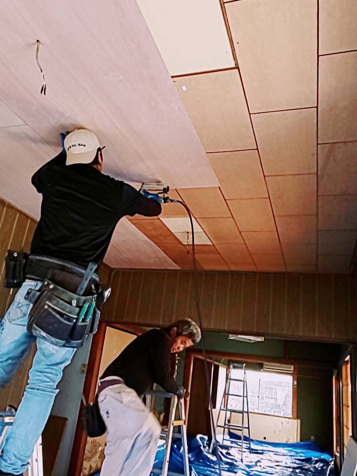 雨漏りによって、天井にシミがあったので、改修工事中です