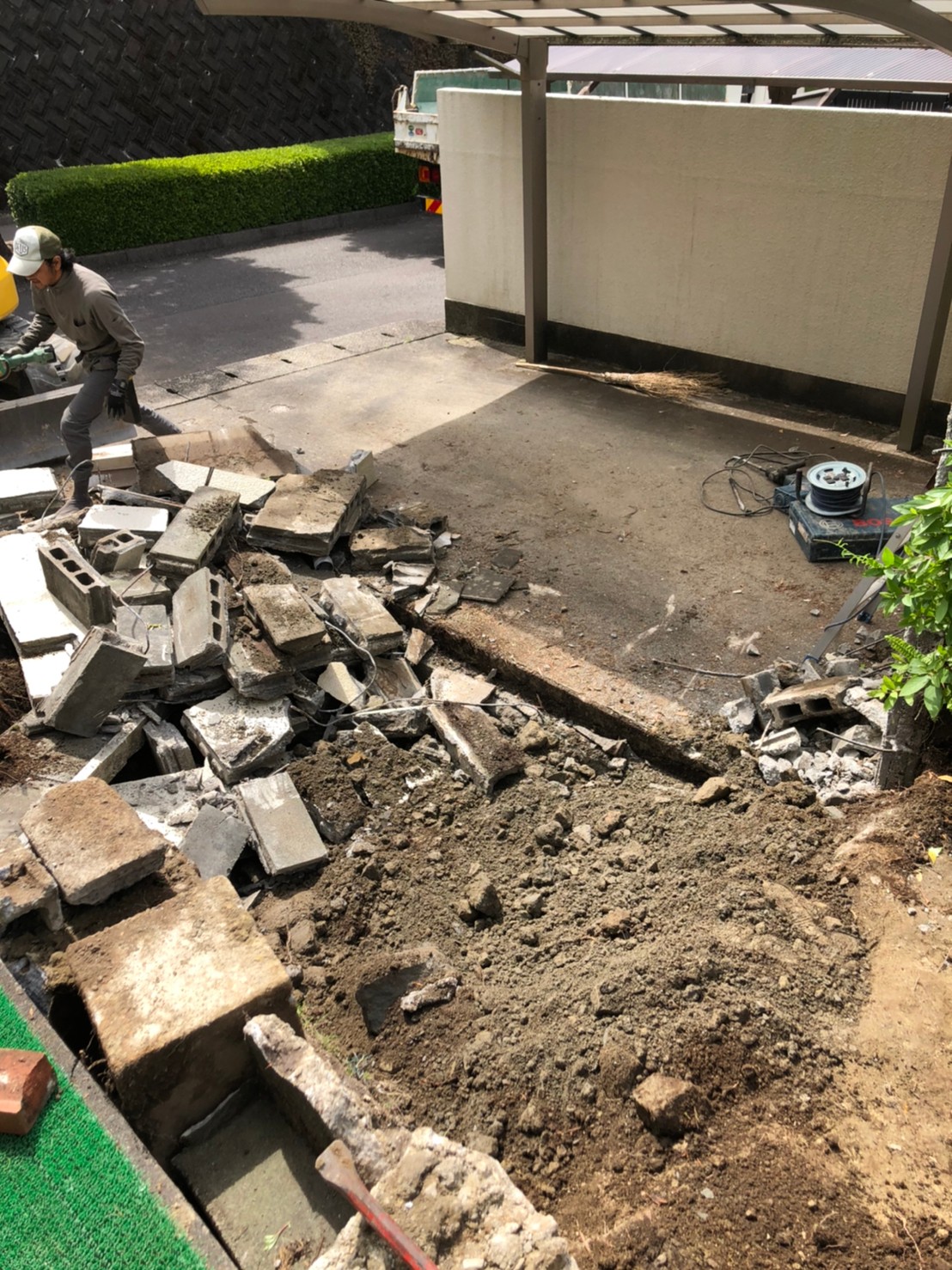 駐車場を新しく造ります。既存の駐車場の解体中です。今日の宮崎は、強風。作業されてる職人さん達、気を付けてお仕事されて下さいね。ほんと、お疲れさまです(^^)ゞ