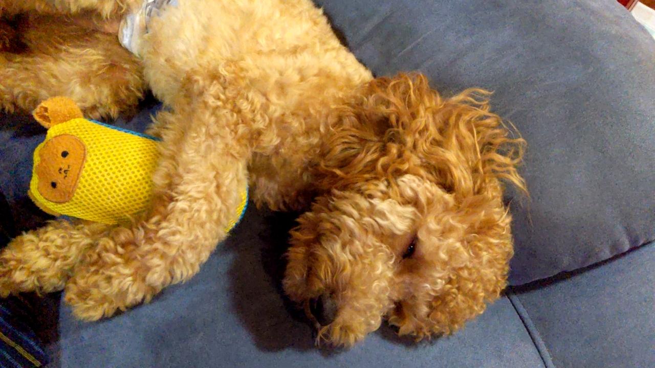 今日も、ムシムシとした1日でしたね(・–・;)ゞ 我が家のワガママ犬すずちゃんもお疲れモード。スヤスヤおもちゃ抱いて寝てます(笑)
