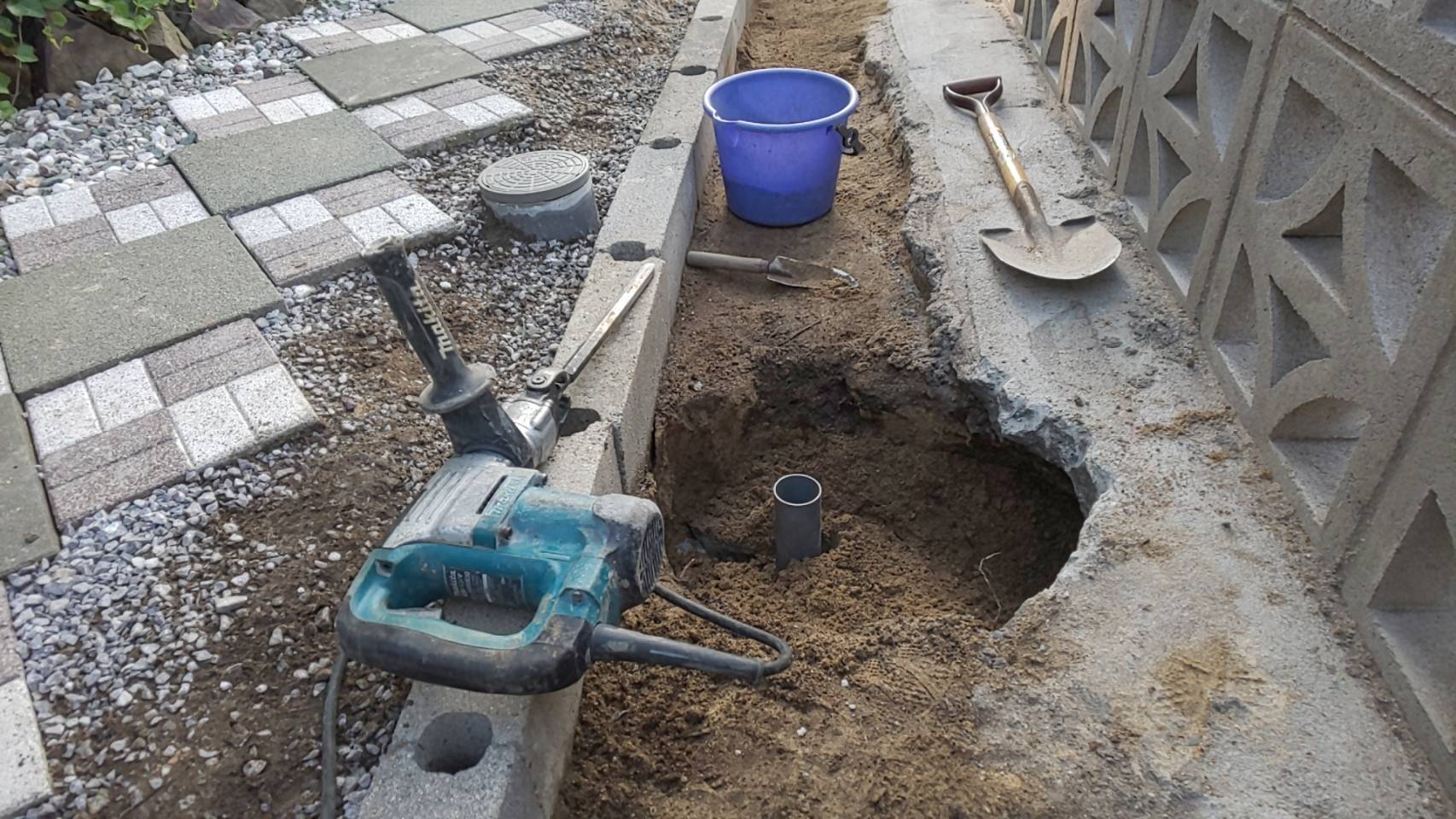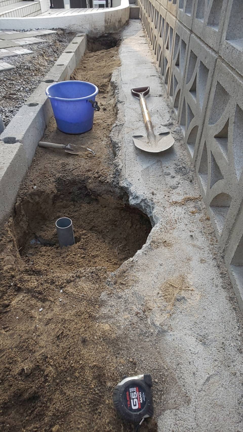 排水管埋設工事。 外構工事の完成を楽しみにして下さい。