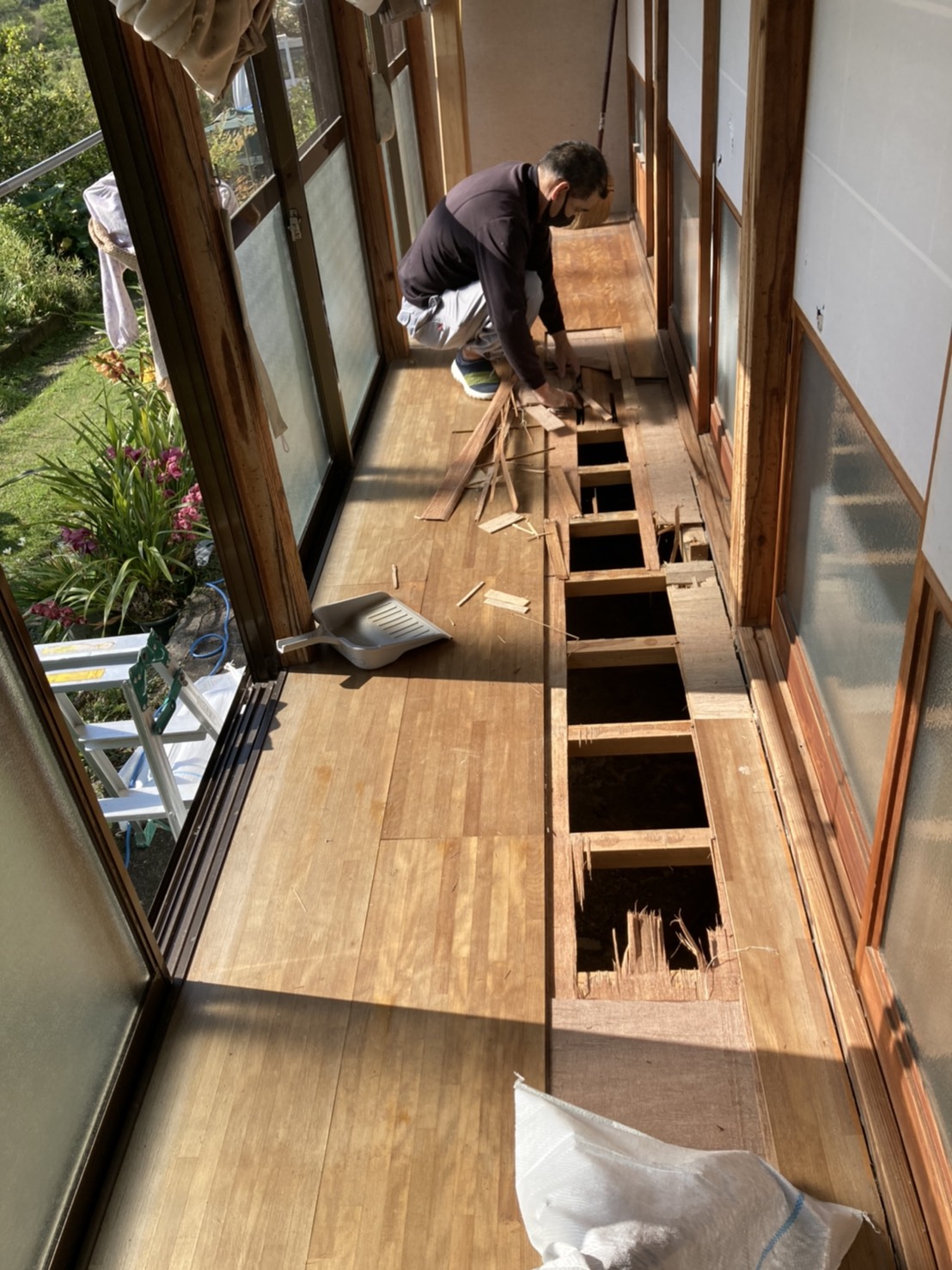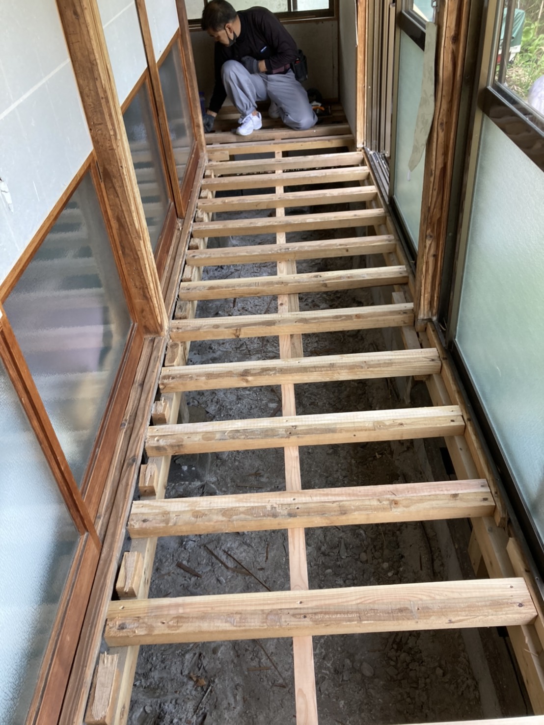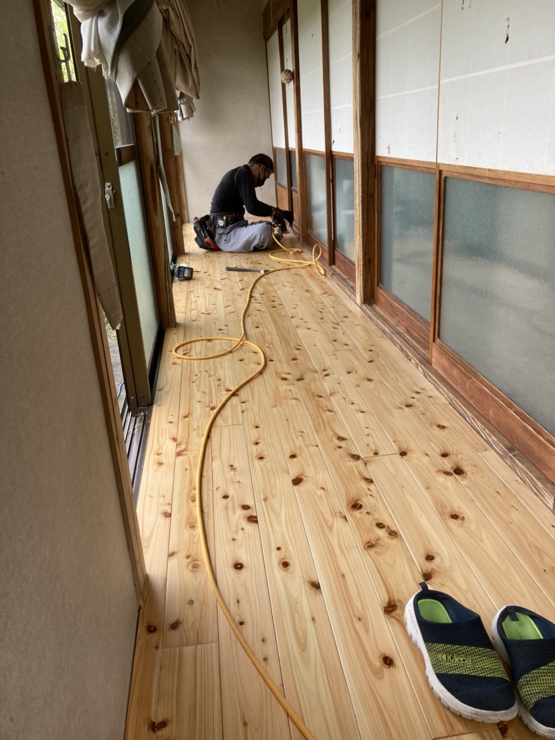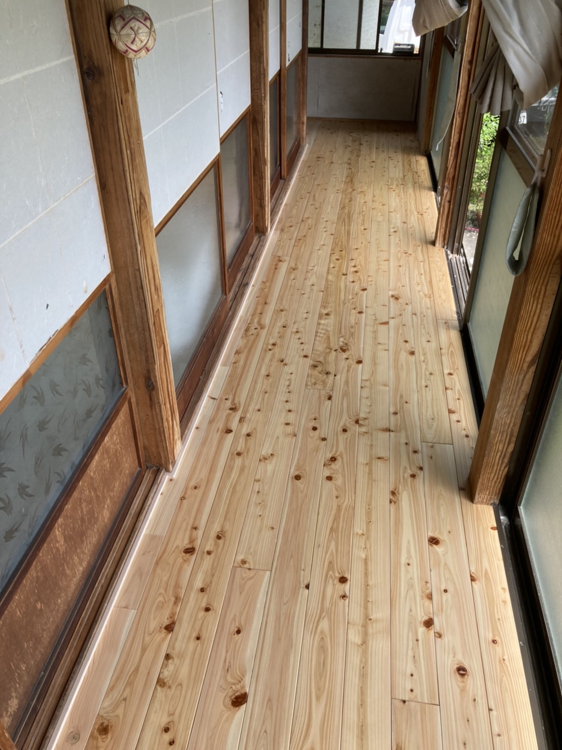 ひのき板に、縁側床張り替え工事完了です(^^)v
