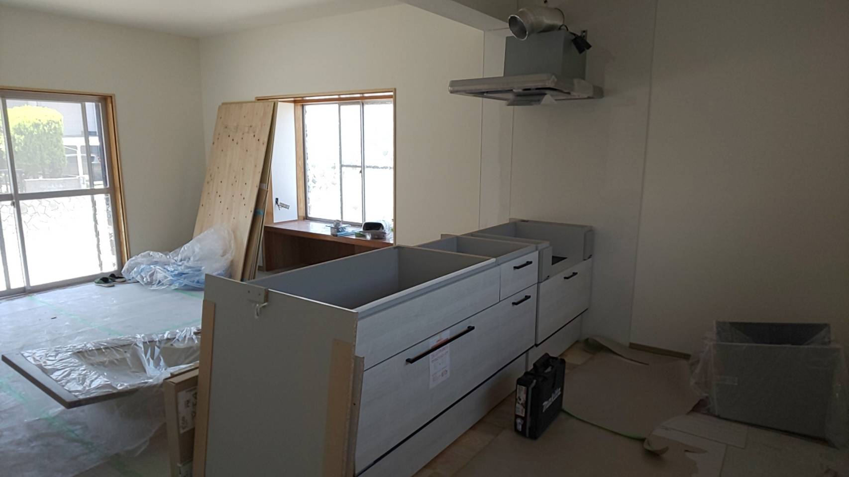 システムキッチン設置工事中です(^^)