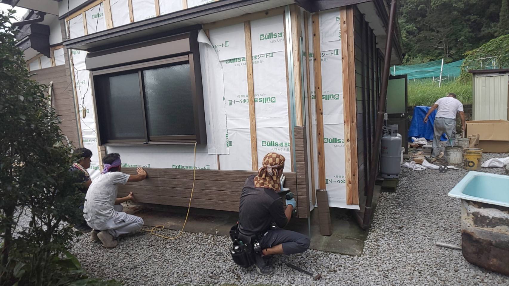 外壁改修…只今、サイデイング貼り施工中です! 今日も季節外れの暑い宮崎です(^^;)