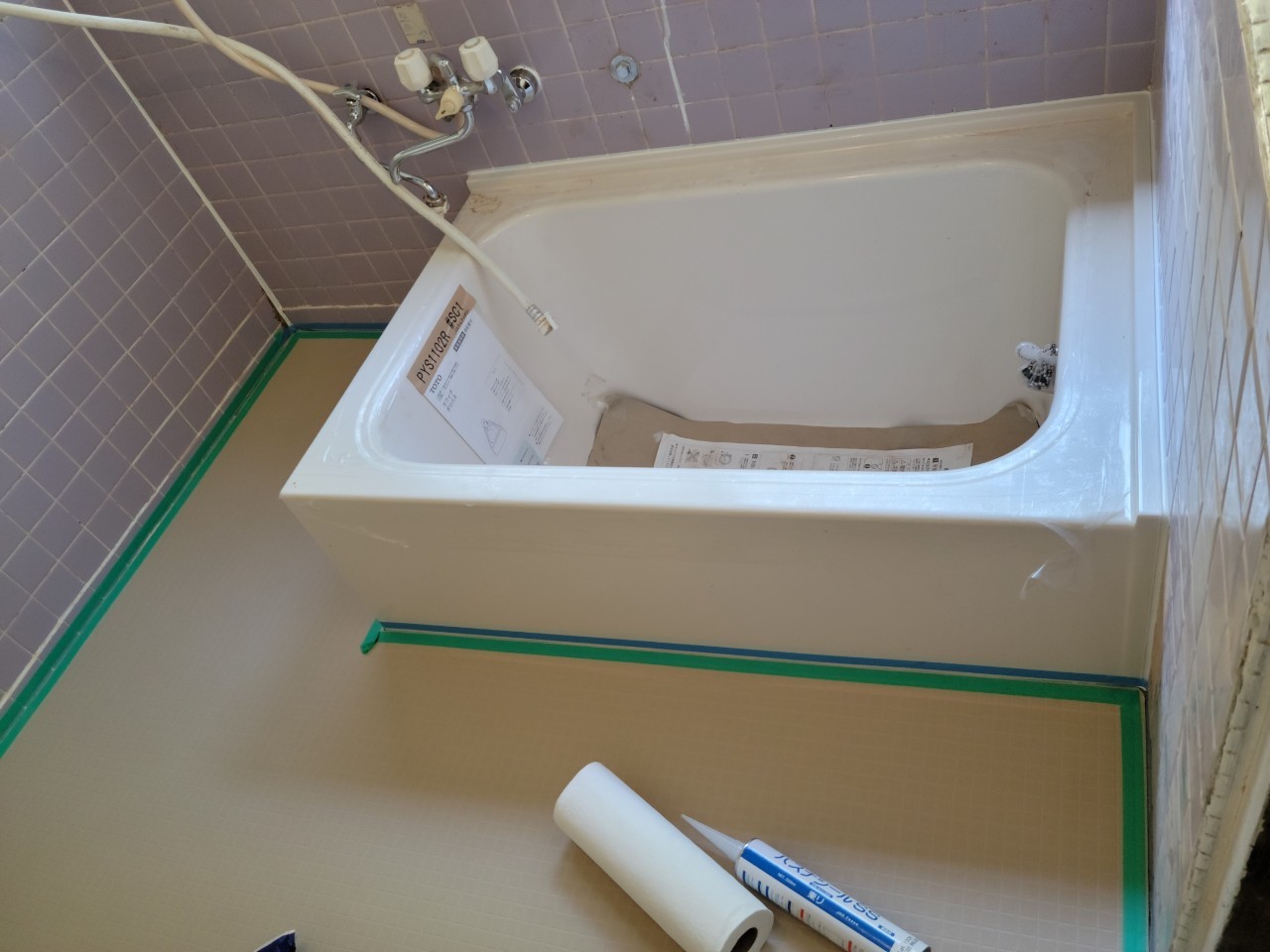 浴槽の入れ替えとそれに伴い浴室専用の床を貼って完了です! システムワンは、お客様のご要望に沿えるよう工事を致しますので、お気軽にご相談下さい(^^)
