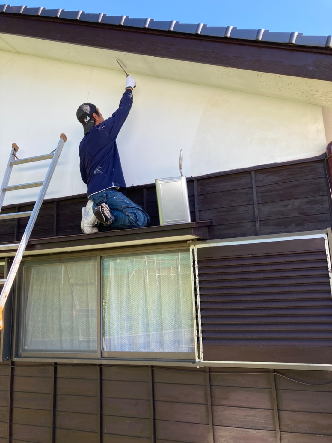 破風・軒天と塗装工事順調に進んでおります(^^)/ ペタペタ