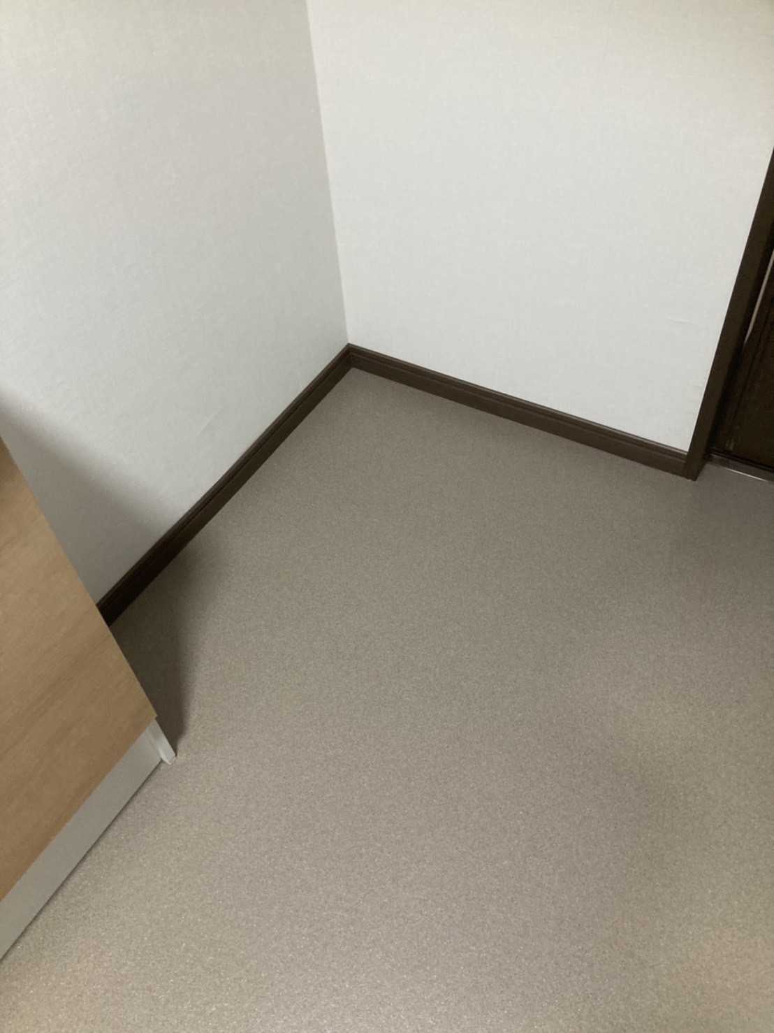 浴室をリフォームと同時に脱衣室も少し広くなりました。脱衣室のCF(クッションフロア)と壁・天井のクロス貼りも完了しました。浴室に合わせて、とてもセンスのいい組み合わせにされました。さすがです~(^^)