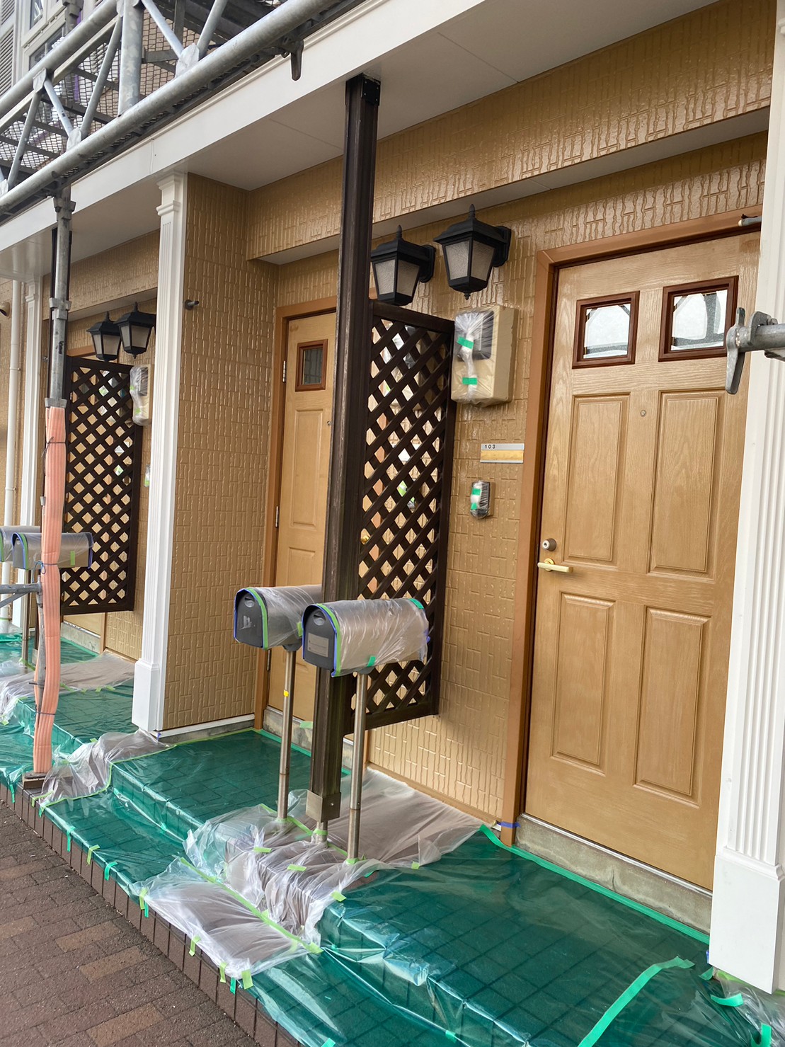 1棟目の塗装工事完了しました。続いて、2棟目の塗装工事に入らせて頂きます。