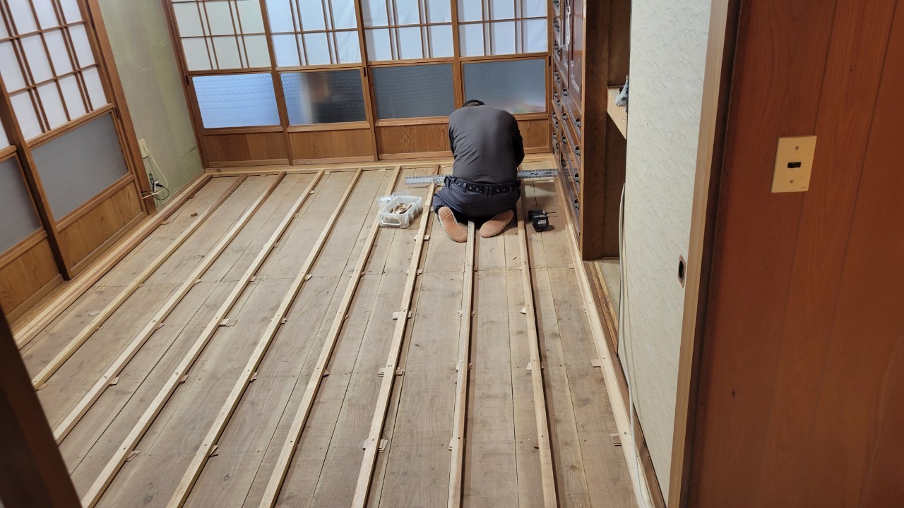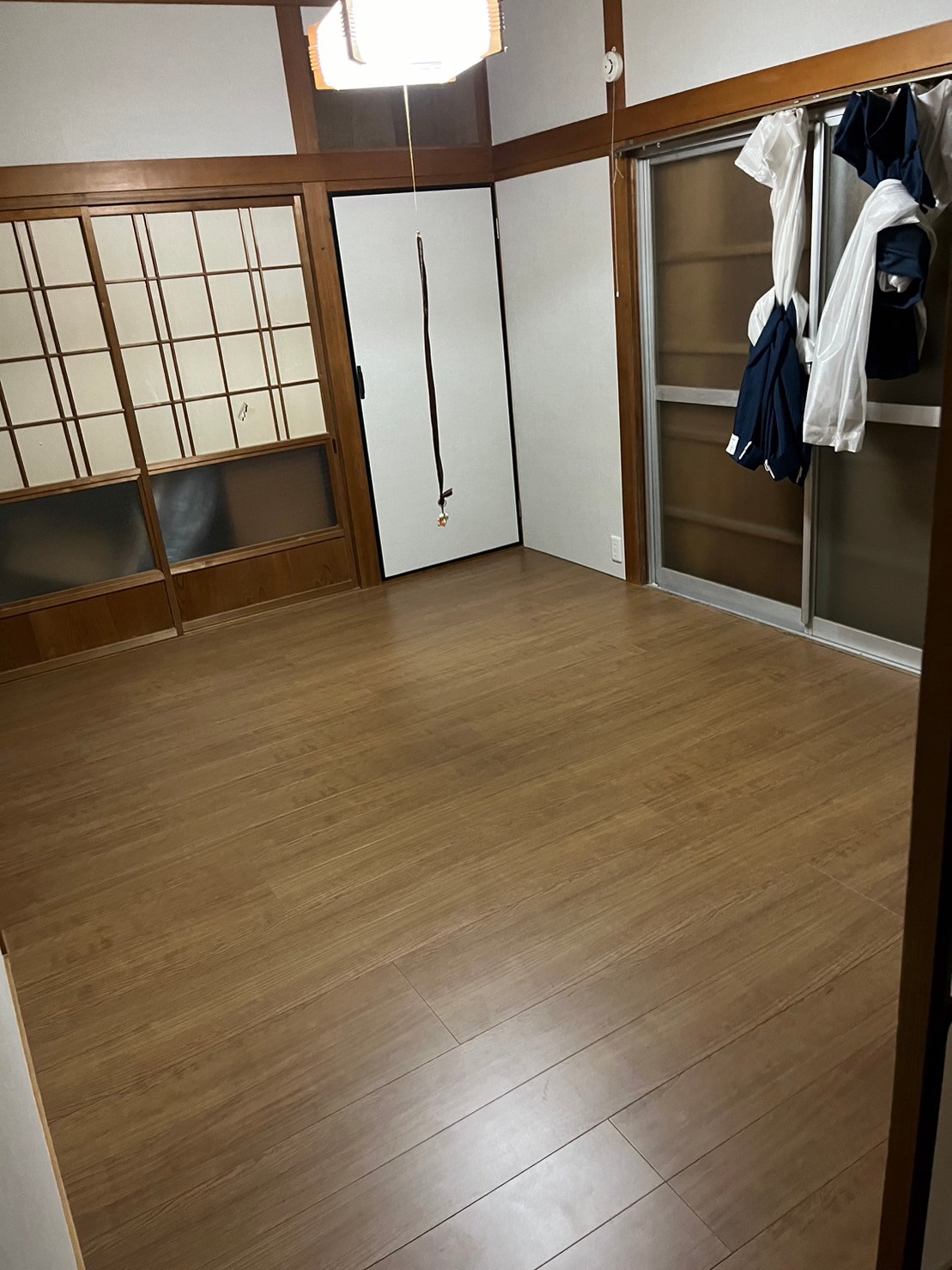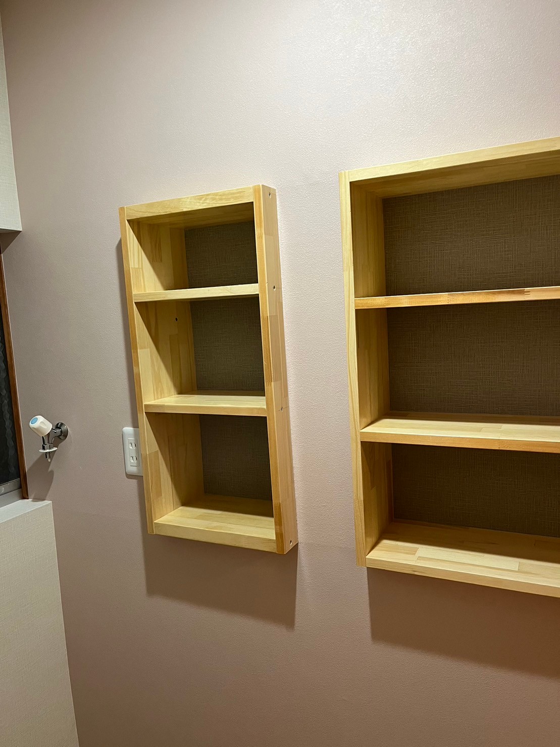 和室を洋間にリフォームし、壁に収納棚の造作しました。