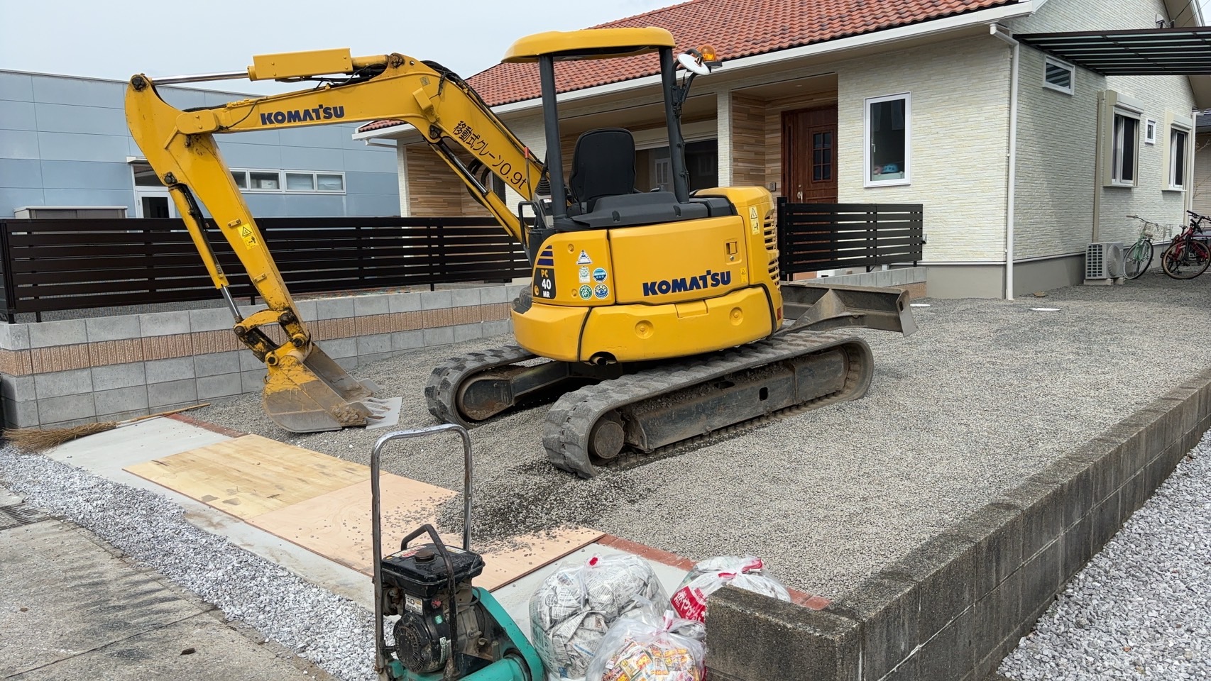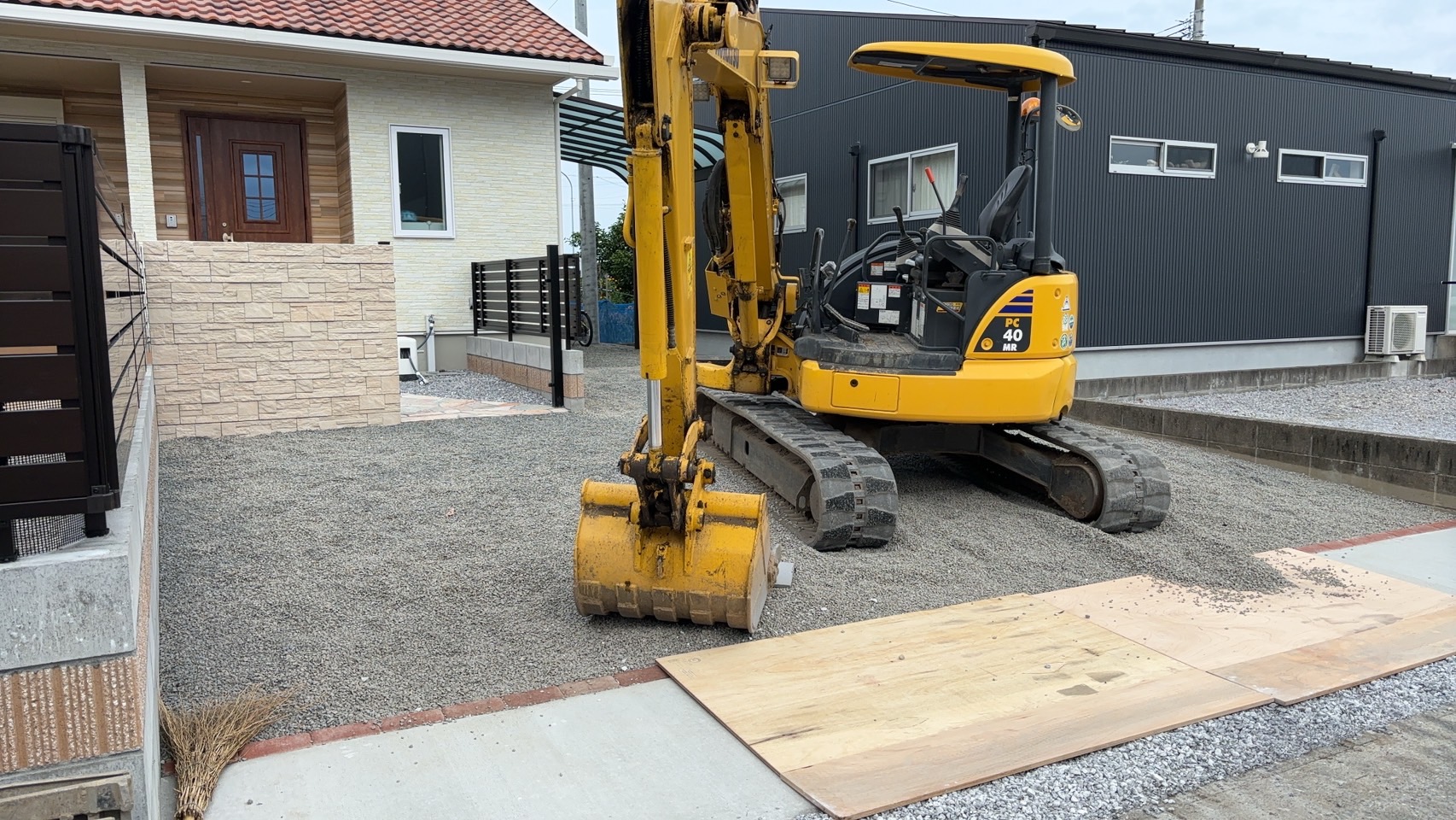 10月はほんとお天気に恵まれず、思うように進まなかった外構工事も、合間をぬって頑張っております('◇')ゞ