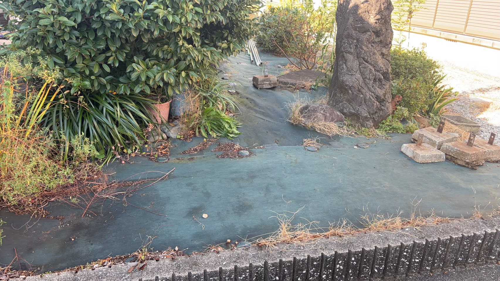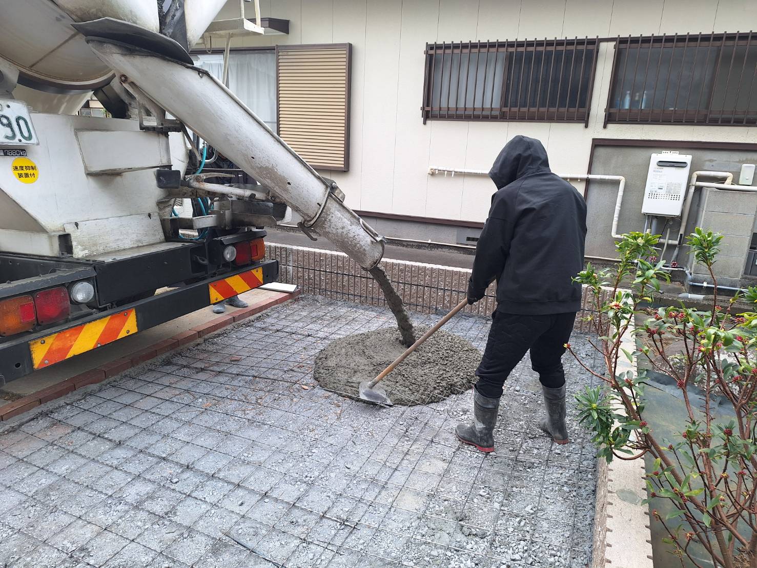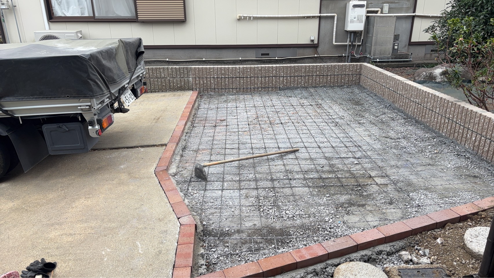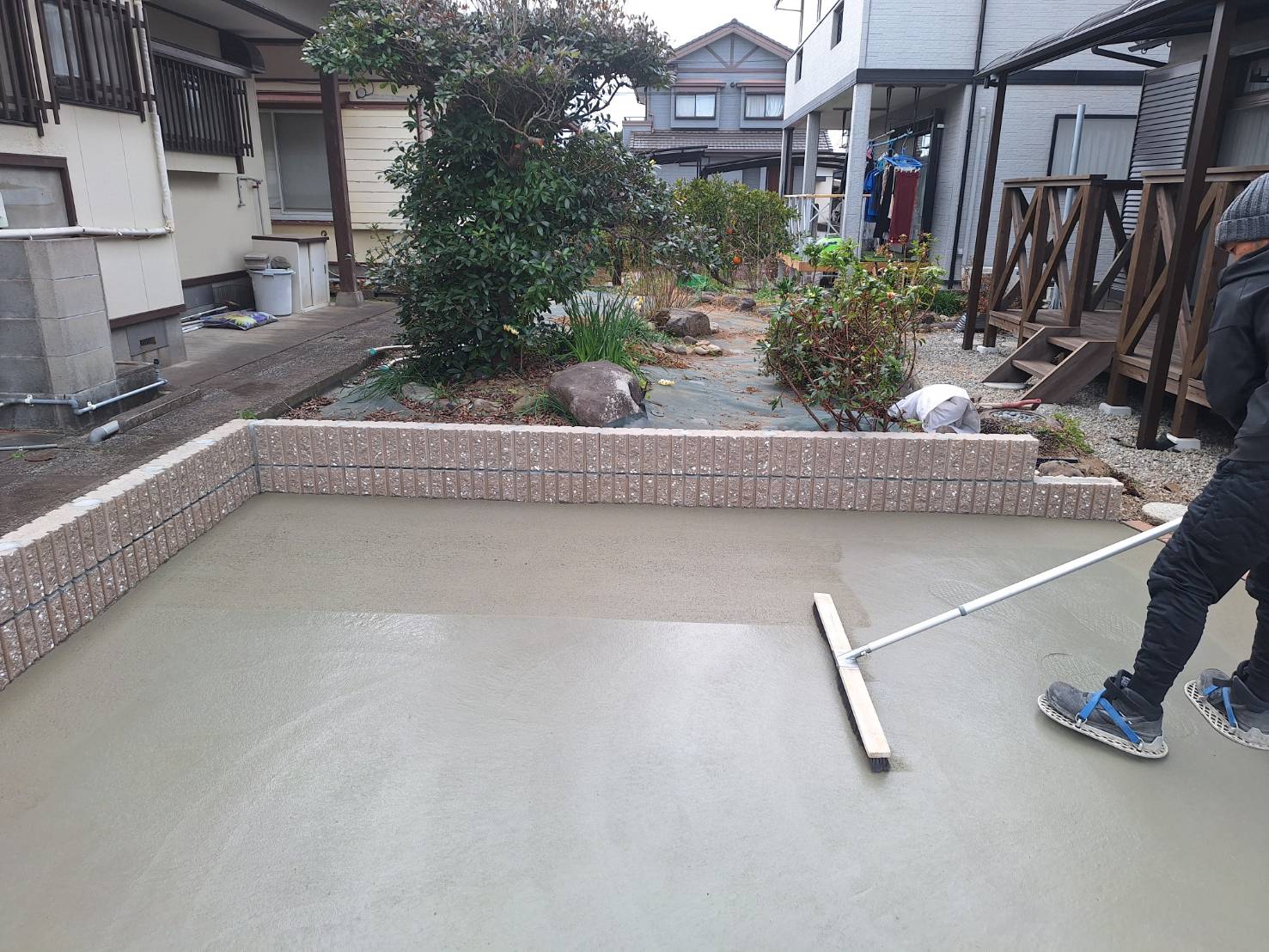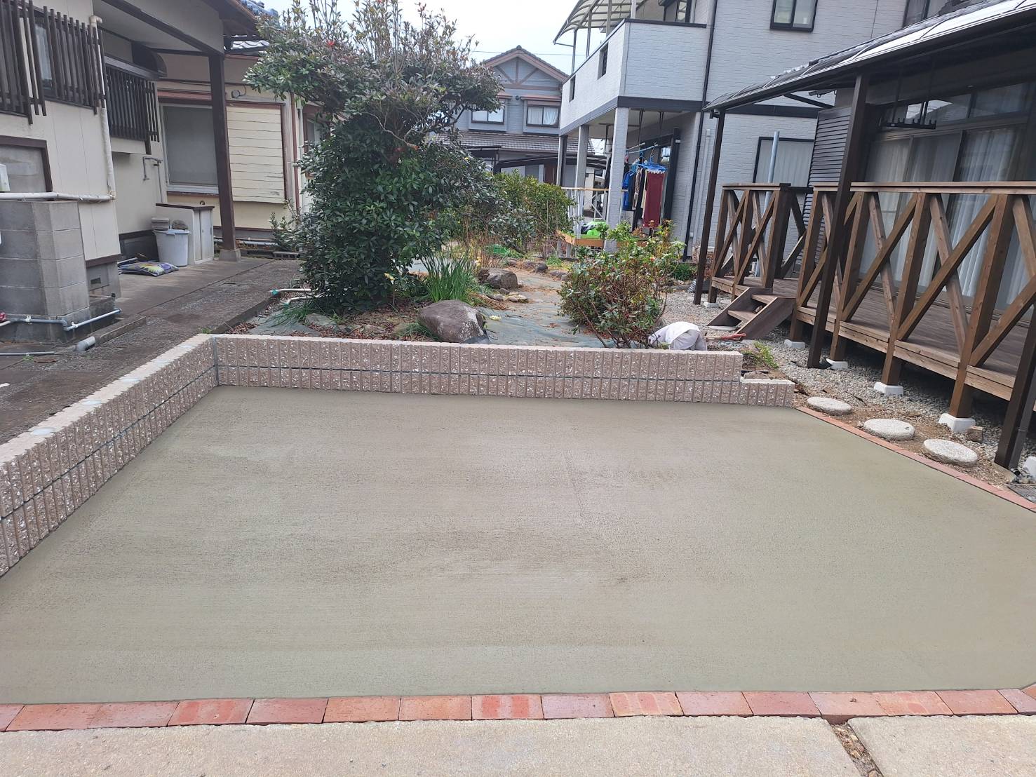 庭の石や植栽で、趣きもあったのおですが、駐車場スペースを広げたいとのお施主様の要望でした。 お客様に喜んで頂けました。 左官職人さん、寒い中本当にご苦労様でした。 施工前
